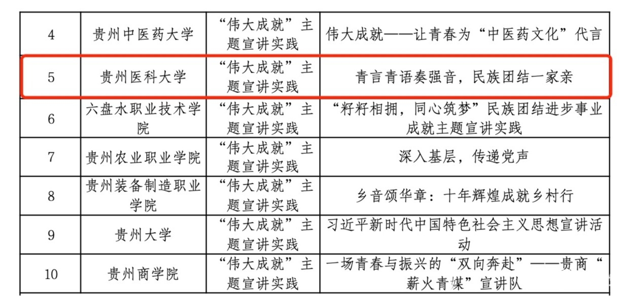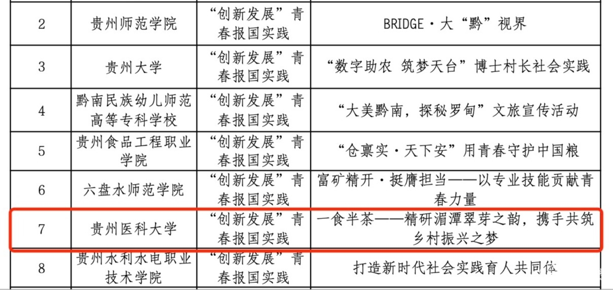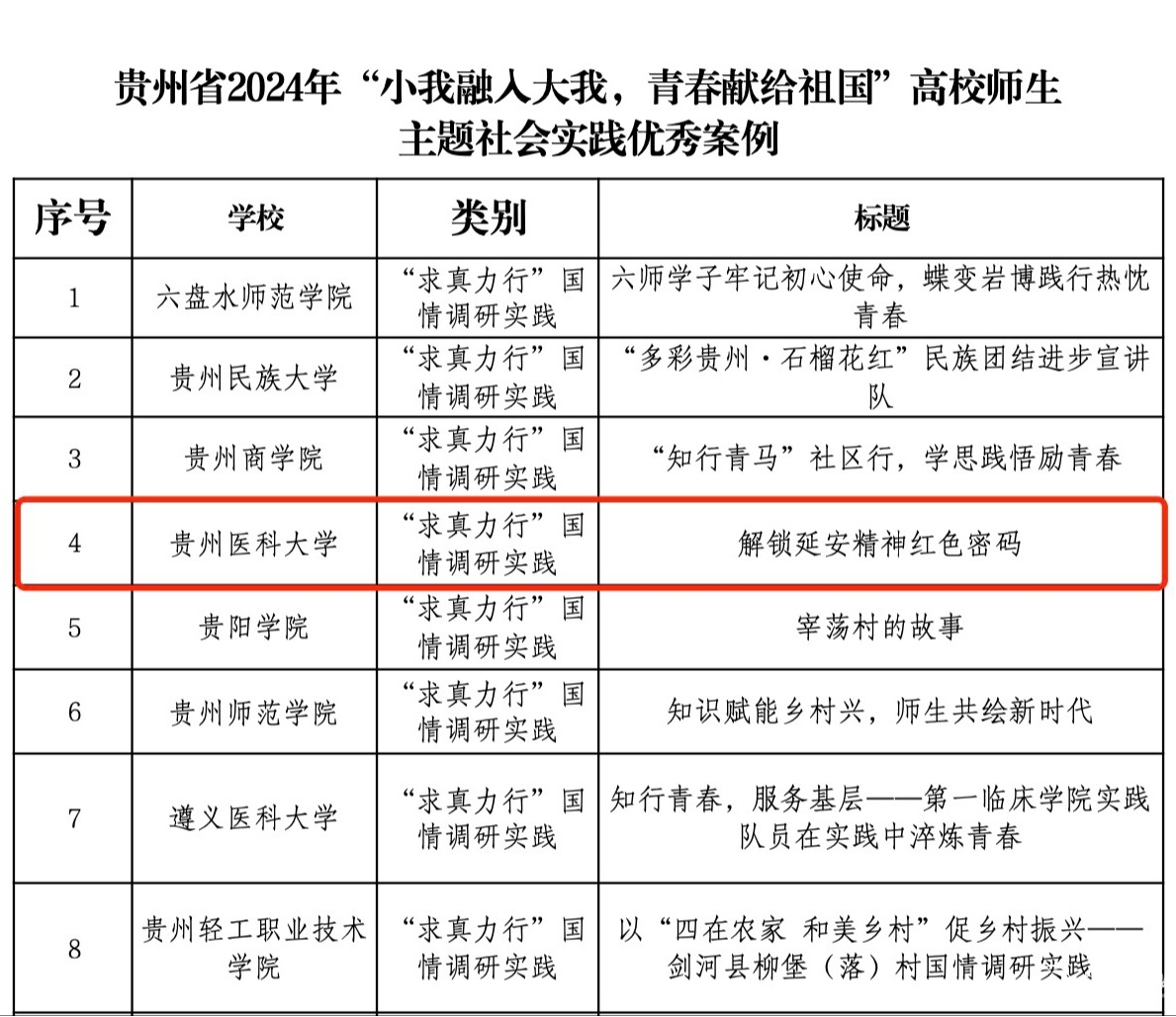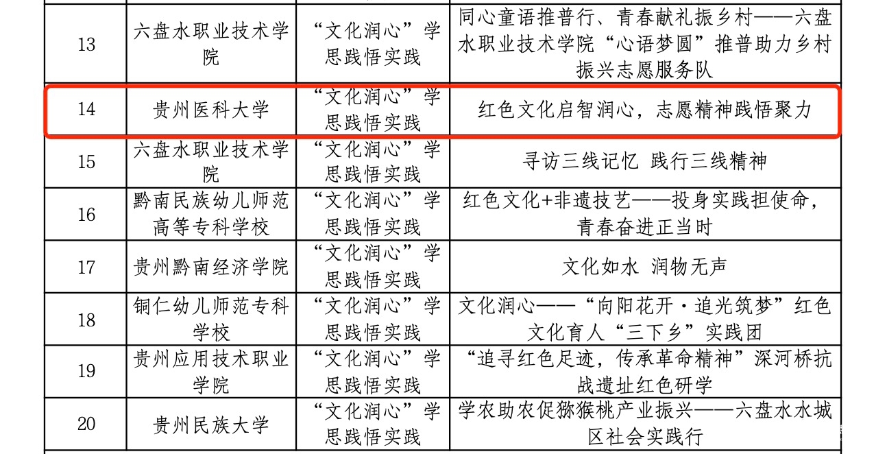 暑期“三下乡”社会实践是推动我校思政实践工作的重要抓手,创新打造了同题共答的育人共同体。我校将持续强校内外联动,打造有贵医特色的思政实践育人品牌,积极引导在校大学生在参与社会实践中认识国情、了解社会,受教育、长才干、作贡献。